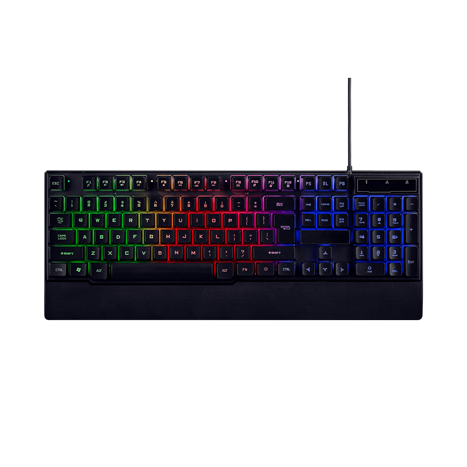 ● Plastic housing ● Entry-level big size gaming keyboard ● Durable 10 million times key life ● Multimedia combined keys for easy access, via FN+ (F1-F12) ● Net weight : approx. 545.4 g ● Keyboard dimensions: approx. 438.0* 178* 42.8 mm ● 1.45M soft rubber cable ●Multiple language versions available