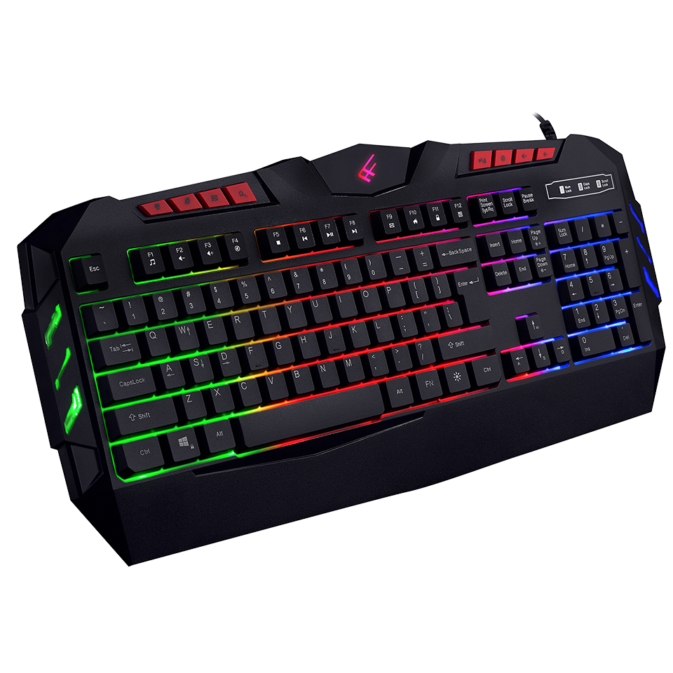◆ Illuminated LOGO ◆ Long lasting laser carved key caps ◆ Multimedia feature with 9 hot keys for easy access ◆ Steady big size gaming keyboard ◆ 19 keys anti-ghosting ( Available for 3/7 color led switch )